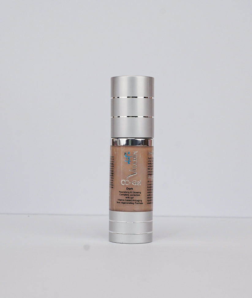 Our CC + GEL is all-in-one, Gel with SPF, a nourishing powerhouse that provides full coverage foundation with a natural finish. This hydrating and anti-aging gel is fortified with broad-spectrum sunscreen, making it your go-to solution for scar reduction, wrinkle and fine-line smoothing. Say goodbye to under-eye dark circles, pores, and dark spots as this formula works to even your skin tone effortlessly. Enriched with skin-loving ingredients like hyaluronic acid, niacinamide, and panthenol, it not only corrects but also cares for your skin.